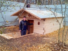 - Järgmisena tuleks valida kõige lihtsam variant - ehitada konstruktsioon kokkupandavast palkmajast. Paigaldage uksed ja kahekordsete klaasidega aknad, kui see on osa projektist.