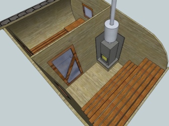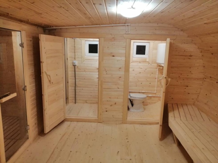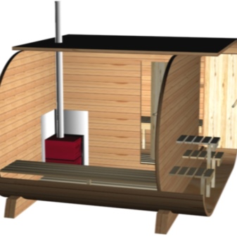 Vene tünnivann on tingimata varustatud vee äravoolusüsteemidega. Arvestades ruumi kompaktsust, on kõik siseseinad vooderdatud tulekindlate paneelidega. Saunas on rõhuasetus tihedusel ning põrandate ja seinte ventilatsiooni liugurid on kohustuslikud. Horisontaalsed mahutid suurendavad oluliselt põrandapinda. Mis puutub ahjudesse, siis need võivad olla ümmarguse või elliptilise kujuga; siis paigaldatakse kas ahi sisse või juhitakse soojus sisse väljastpoolt.