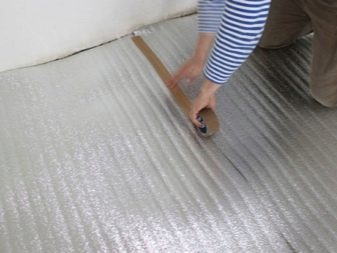 - Fooliumkattega soojustuslehtede paigaldamine seljaga tagant ülespoole kerge (mõne sentimeetri) kattuvusega seintele, ühendades need fooliumiga kleeplindiga. Isolatsiooniks saab valida vahtpolüstüreeni, vahtpolüstüreeni, polüpropüleenist jne. Seda tüüpi isolatsiooni valides tuleb arvestada, et mõned isolatsioonitüübid on üsna paksud ja seetõttu on ruumi kõrgus veelgi madalam.