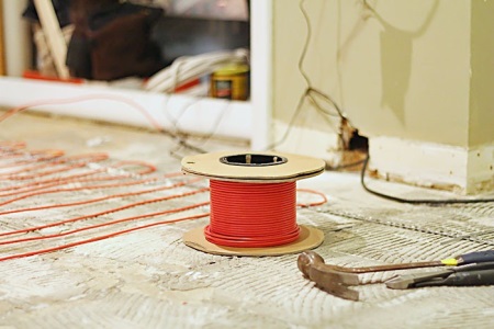 - Pange küttekaablile ja temperatuuriandurile 220 V elektriline pinge, et kontrollida kogu süsteemi nõuetekohast toimimist. Kui see on nii, siis lülitatakse vool välja, kuni vannitoa renoveerimistööd on lõpetatud.