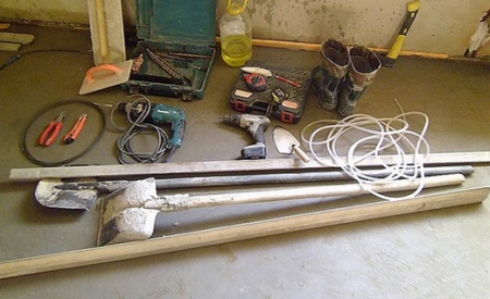 - Seinale vertikaalselt kuni põranda tasandini viimine (2x2 cm ristlõikega), kasutades kivikettaga pöörlevat vasarat või lihvimisseadet.