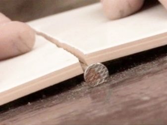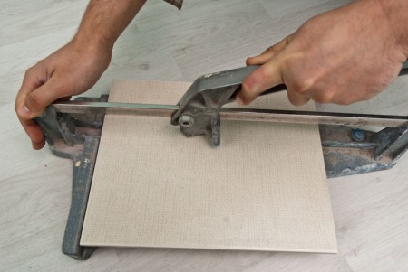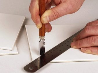 Plaadid tuleb lõigata täpse ja täpse liigutusega. А Et vältida plaatide lõhenemist lõigatud tüki ära murdmisel, võite dubleerida plaadi alumisel küljel olevat madalat lõikejoont.. Seda saab teha mis tahes lõiketööriistaga, mis teil on käepärast.