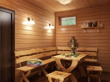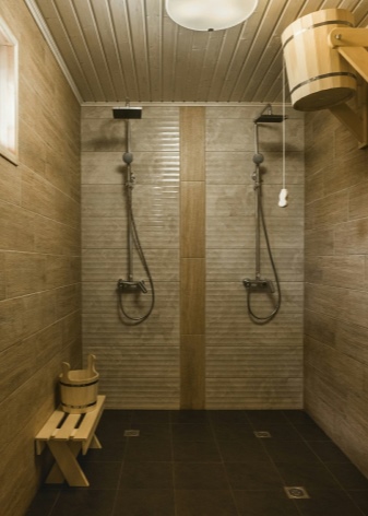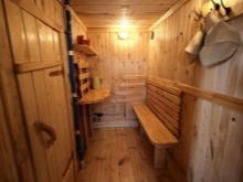Taukotilasta pääsee pesuhuoneeseen. Tähänkin huoneeseen on runsaasti vaihtoehtoja. Toinen on perinteisempi venäläinen, penkkejä ja altaita sisältävä. Toisten mielestä moderni versio on parempi - asenna suihkukaappi. Kylpyhuonekoppi on myös käytettävissä.