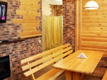 - Tämä vaihtoehto, jossa on kaksi kerrosta, mahdollistaa käytännössä koko talon varustamisen. Pohjakerroksessa on kaikki tarvittavat tilat: höyrysauna, suihkuhuone, kylpyhuone, lepohuone, esikylpylä ja jopa terassi. Toisessa kerroksessa on kaksi huonetta, joista on pääsy parvekkeelle.