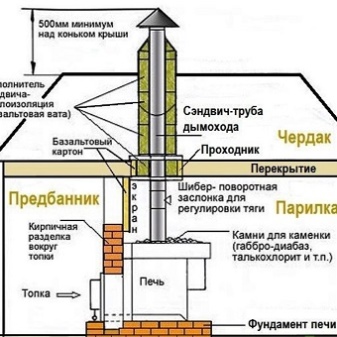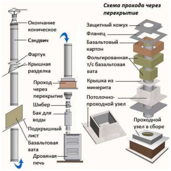 Tiivistämisessä on myös omat vivahteensa: savupiipun sisäpuolella tiiviste levitetään lähemmäs eristettä, ulko-osassa sitä levitetään myös lähemmäs eristekerrosta ja siirtymässä savupiipusta sandwichiin sitä levitetään koko kehälle. Ullakolla savupiippu on asennettu metalliseen laatikkoon tai esiliinaan, kuten sitä myös kutsutaan. Tämä on vain yksi kokoonpanovaihtoehdoista.