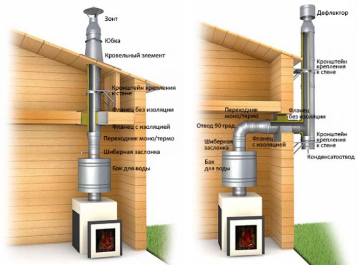 Useimmiten valitaan ruostumattomasta teräksestä valmistetut laitteet, joten on kiinnitettävä huomiota sisäputken materiaalin laatuun ottaen huomioon, että savupiipun lämpötila on lämmityksen aikana 800-1000 celsiusastetta. Savuhormin sisähalkaisijan on oltava vähintään 10 cm. Tämän vuoksi asiantuntijat suosittelevat 12x18H10T- tai 10x23H18-ruostumattomasta teräksestä valmistettujen putkien käyttöä.