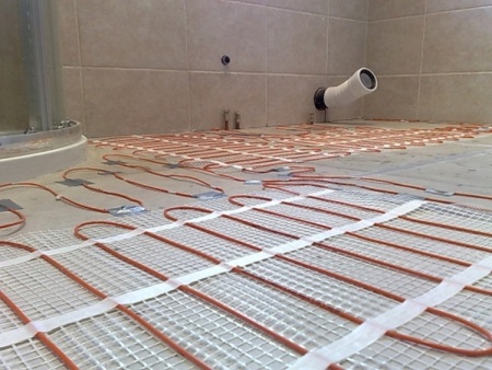 Infrapunalattiajärjestelmät ovat tällä hetkellä hyvin suosittuja. On kuitenkin suositeltavaa käyttää sähkömattoja laatan alle asennettaessa. Pakkauksen lisäksi sinun on myös ostettava eristys - foliopäällysteinen folio. Tämä toimii aluskatteena ja minimoi lämpöhäviöt. Tämä vähentää sähkökustannuksia myöhemmin. Kalvo on asetettava tasoitteen päälle siten, että kalvo on ylöspäin. Itse järjestelmän lisäksi myös laatoitus on mietittävä etukäteen.