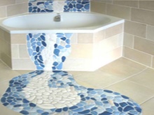 - Asentamalla tyhjä näyttö kylpyammeen alle, se voidaan viimeistellä mosaiikeilla. Viimeistely voi olla tavallinen tai kuvioitu.
