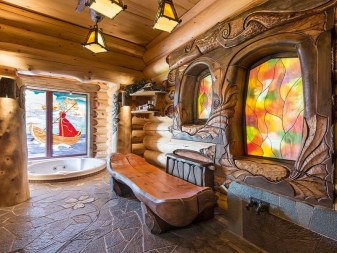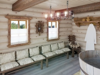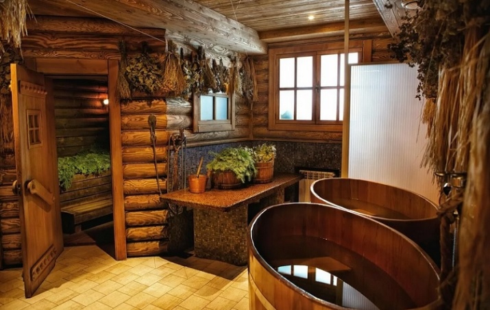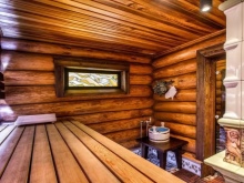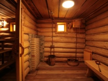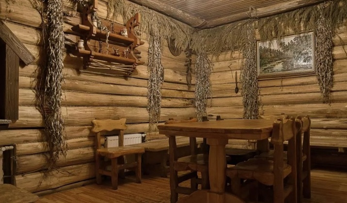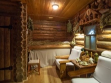 Ideális egy orosz fürdőházhoz. Egy rönkfából készült kunyhószerű épület tökéletesen mutatna egy fenyővel, lucfenyővel és más tűlevelűekkel beültetett nyaraló telken. A szoba berendezéséhez természetes alapanyagokból készült dekoratív faelemeket és bútorokat választottak. Hímzett terítőkkel, fürdőseprűkkel és könnyű függönyökkel hangulatos légkört teremthetünk a szobában.
