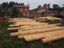 - Hengeres rönkök. Ez a fajta építőanyag nemes és kifinomult megjelenésével vonzza a figyelmet. A rönkök a speciális berendezésekkel történő feldolgozásnak köszönhetően kerekek és rendezettek.