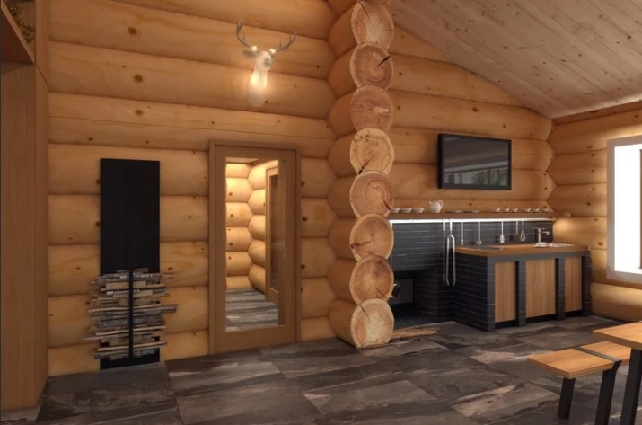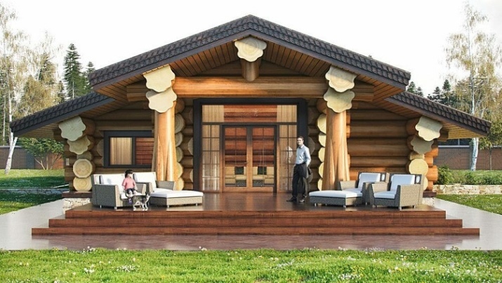 - Modern stílusú rönkszauna. Ez egy praktikus és megbízható építőanyag kombinációja esztétikus megjelenéssel.