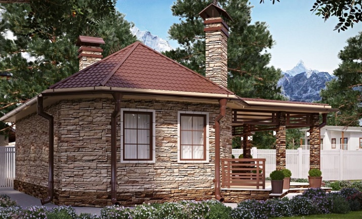 A kőszauna nagyon alapvetőnek és lenyűgözőnek tűnik. Ennek az anyagnak számos előnye van. Az első és legfontosabb a kő tűzbiztonsága, valamint az alacsony zsugorodása - mindössze 5%. A kő a kereskedelemben kapható, alacsony árú és hosszú élettartamú. Azonban számos hátránya is van, ezért nem használják széles körben a fürdők építésénél. Az egyik az építés bonyolultsága - a kövek szabálytalan alakúak, így nehéz stabil szerkezetet létrehozni. Ezenkívül a kő nem tartja meg a hőt, ezért megbízható szigetelésre van szüksége, és a szaunakályha meggyújtásakor megnövekedett tüzelőanyag-fogyasztást igényel.