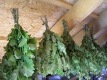 Az álmennyezet lehetővé teszi, hogy a padláson egy területet biztosítson a seprűk tárolására. A megoldás egyszerű: elhelyezünk egy lejárót és egy behúzható létrát. A szaunában éger, hárs vagy nyárfa használatát javasoljuk. Ne használjon gombával fertőzött fát vagy repedezett vagy repedezett deszkákat.