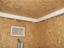Az összeszerelt szerkezet felemelése előtt érdemes a táblákat konzolokkal megerősíteni. Ellenkező esetben valószínűleg összeomlik. Emelés után távolítsa el a rugókat. A panelek közötti hézagokat meg kell védeni a gőzszivárgás ellen, és szigeteléssel kell kitölteni. A lambériázott mennyezetet nagyon könnyű összeszerelni, még a kezdők számára is.