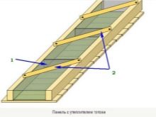 Az ilyen mennyezetet a földön szerelik össze, majd felemelik. Természetesen nem egyszerre, hanem egyes nagy panelek, amelyek kezdetben deszkákat és rudakat tartalmaznak. Ez a módszer lehetővé teszi, hogy minimalizálja azt az időt, amíg felemelt fejjel kell dolgoznia. Egy 5x10 cm-es faanyagot használnak. A merev szigetelés szélességével párhuzamosan, vagy az ásványgyapot szélességénél 2 cm-rel kisebb szélességgel kell elhelyezni.