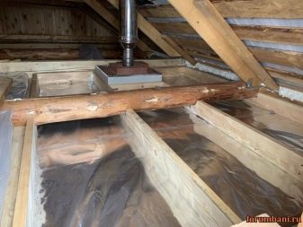A deszkákat szigorúan keresztben rakják egymásra. A széleiknek egy kicsit túl kell nyúlniuk a tábla határain. A faltól való távolságnak legalább 50 mm-nek kell lennie. Az ilyen szerkezetet a "szegélyléccel" együtt fejjel lefelé kell fordítani, és párazáró réteggel kell borítani, amelyet tűzőgéppel rögzítenek. Ezután hőszigetelést adnak hozzá, kivéve az ömlesztett szigetelést.