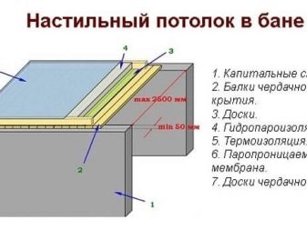 A mennyezet előkészítésének ezt a módszerét tartják a legegyszerűbbnek. Orosz fürdőházban éppúgy használható, mint bármely más fürdőházban. Ez a megoldás azok számára is alkalmas, akik egyáltalán nem jártasak az építőiparban. Mindazonáltal egy lépésről-lépésre történő útmutató nem rossz ötlet. Mindenekelőtt meg kell ismerkednie a deszkázott tetőfedélzet építési tervével.