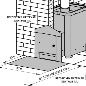 Még a legjobb szaunakályha is elromolhat, ha helytelenül van beszerelve. Fontos, hogy a fűtőberendezést tűzálló környezetben helyezzük el.. Egy legalább 1x1 m méretű acéllemezt kell elhelyezni a tüzelőberendezés előtt. Az ajánlott tűztávolságok a különleges előírásokban találhatók. Tartson legalább 1,1 m távolságot a polcoktól és a fa válaszfalaktól.