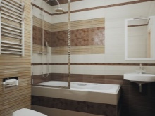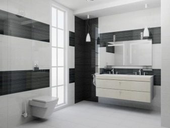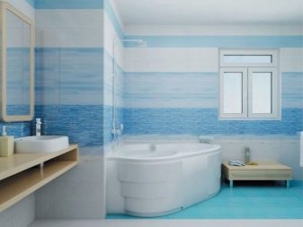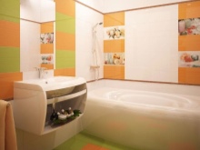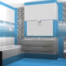 Egyszerű színek sikeres kombinációja, amely vizuálisan növeli a szoba térfogatát. Ehhez különösen a burkolóanyag világos tónusai járulnak hozzá.