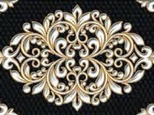 A klasszikus tónusokat feltűnő keleti aranyminta egészíti ki. Ez egy feltűnő részlet a csempézésben, amely az aranyszínű fény illúzióját kelti.