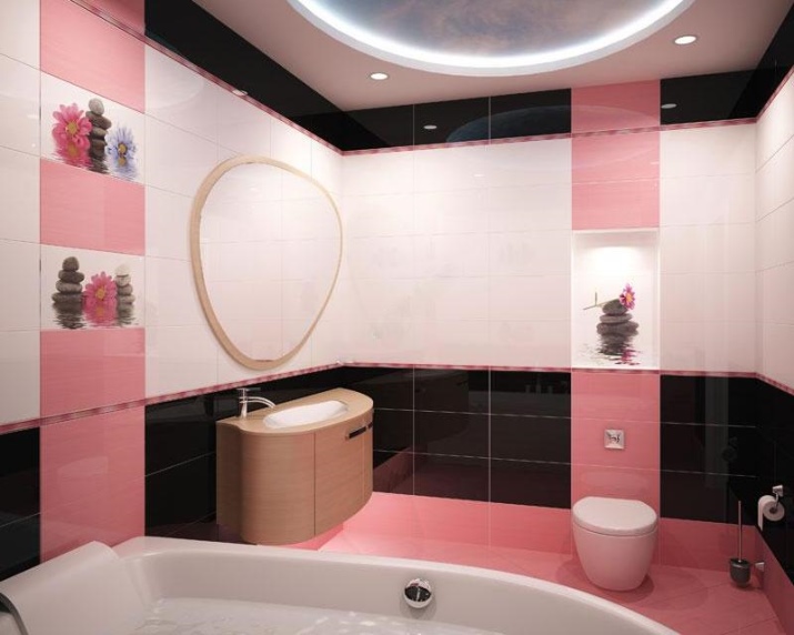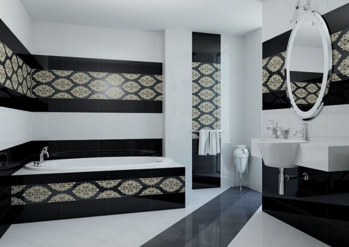 A sima burkolóanyagban feltűnő, figyelemfelkeltő elemet lehet létrehozni különböző motívumokkal való díszítéssel. Különösen feltűnőek és harmonikusak a fekete-fehér csempékkel a bogyós gyümölcsöket vagy telített színeket tartalmazó elemek.