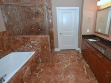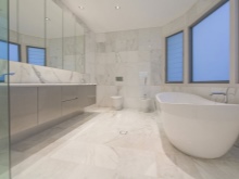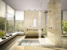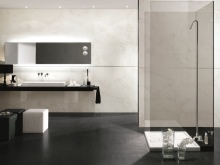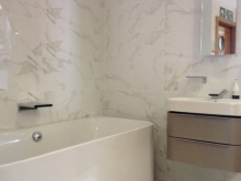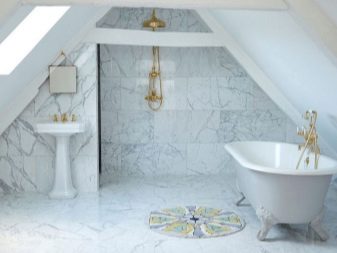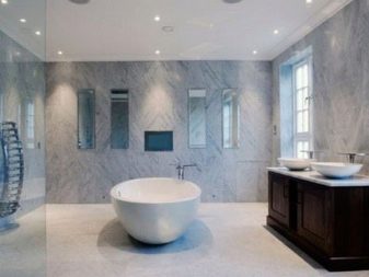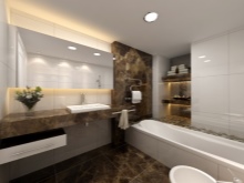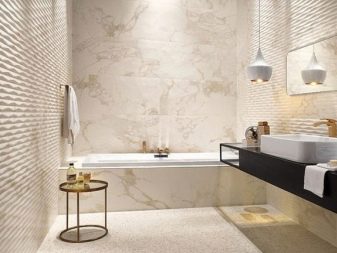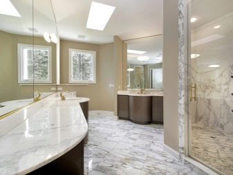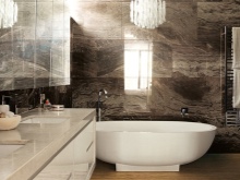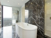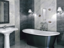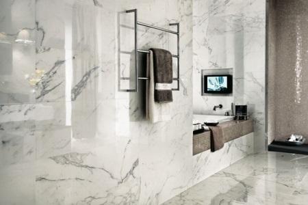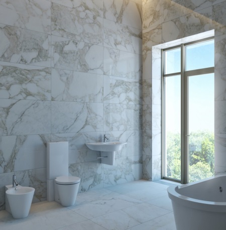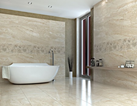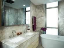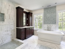 - A szoba mérete és típusa. Ez valószínűleg a legfontosabb kritérium a fogyóeszközök kiválasztásánál. Ha például egy kis fürdőszobába márványt szeretne, akkor világos színeket, fényes felületet és kis vagy közepes méretű csempét válasszon. A nagyobb helyiségek tulajdonosai bármilyen színösszeállítás, matt vagy csúszásmentes felület és nagyméretű csempék közül választhatnak.