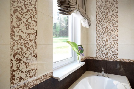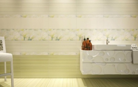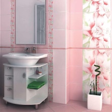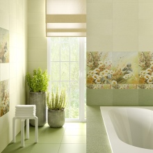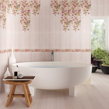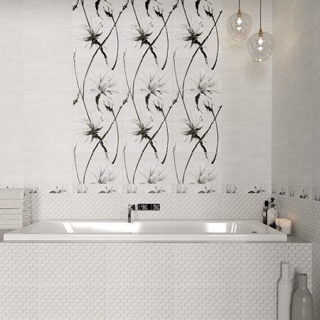 A dekoráció támogatja az alapcsempe témáját, és virágmintákkal egészíti ki azt, a tavasz és a frissesség hangulatával töltve meg a belső teret.