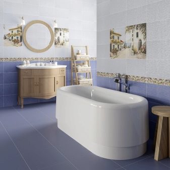 kék kerámia csempe: "Venus", "Melody", "Madeira", "Ladoga", "Modena", "Sofia", "Tulipán", "Moire", "Severina", "Medallion", "Technogres";