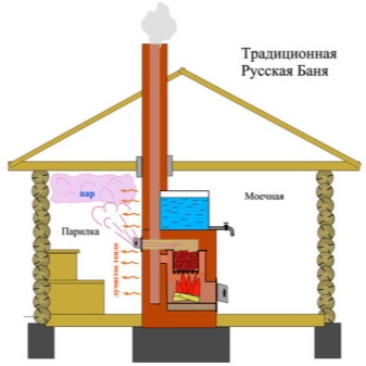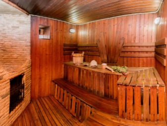 - Il bagno russo. È caratterizzato da una cabina di legno, la divisione delle stanze in una stanza di vapore e una stanza da bagno, a volte si aggiunge una stanza di riposo. All'interno della cabina c'è un fornello bianco o nero e un serbatoio d'acqua. L'aria all'interno è riscaldata fino a 50-70 gradi e il livello di umidità è di circa il 70%.