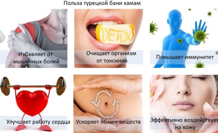 La durata media di una visita all'hammam è da 1,5 a 2 ore. Questo è un tempo sufficiente per ottenere un effetto di recupero. Il corpo può riposare e rinnovarsi, i muscoli si rilassano e la pelle risplende. Non ci sono praticamente controindicazioni al bagno turco. Tuttavia, in caso di malattie croniche gravi, pacemaker impiantato, periodo di gravidanza è meglio consultare il medico prima.