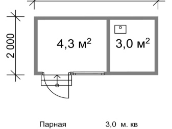 Camera con doccia. Può essere un piccolo scomparto, a seconda delle dimensioni della sauna. Solo 1 metro è dato a questa stanza.