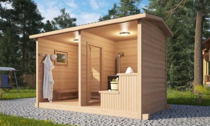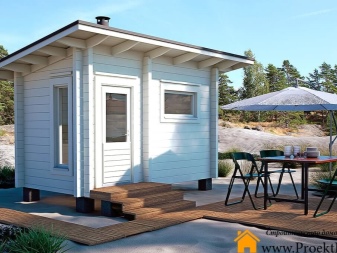 Il più popolare è il progetto di un mini-bagno da un bar. Quasi ogni artigiano può costruire una tale struttura. Nonostante le sue dimensioni, il piccolo ed ergonomico bagno di legno ha tutti gli scompartimenti necessari. Il bagno di vapore e la sala di lavaggio possono ospitare fino a tre persone. Il fornello si adatta facilmente a un angolo. È una delle soluzioni di cottage più convenienti.