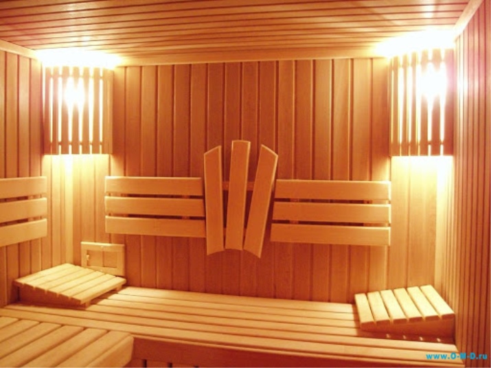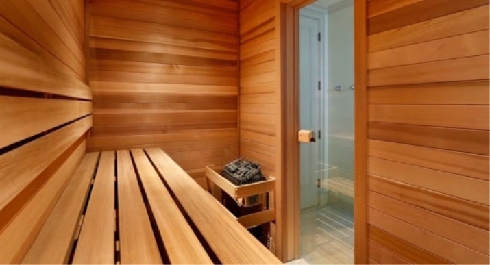 Usare legno naturale. (pino, pioppo tremulo, larice, tiglio o ontano). Per l'anticamera e la sala relax, rivestimento con materiale resistente all'umidità o compositi di legno.
