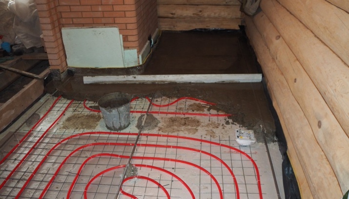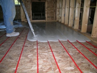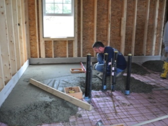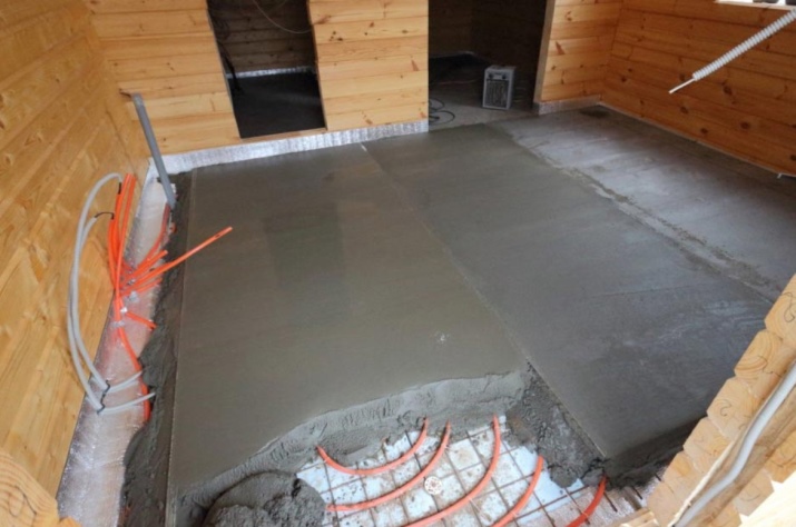 Gli specialisti esperti consigliano di mettere l'isolamento tra due strati della base di cemento. Lo strato superiore può essere più sottile dello strato di base per risparmiare spazio nella stanza. Quando si montano questi sistemi, il livello di umidità nella sauna deve essere preso in considerazione. Per questo motivo, si raccomanda di trattare tutti gli elementi strutturali di conseguenza.