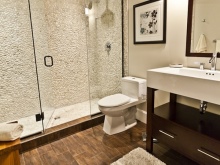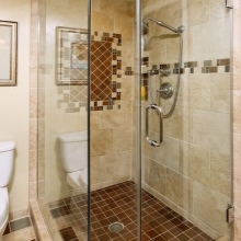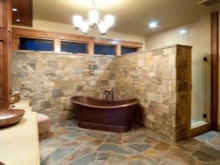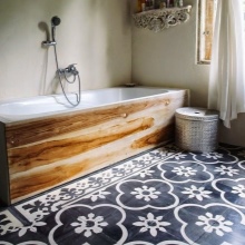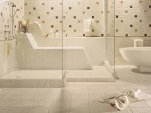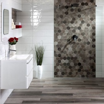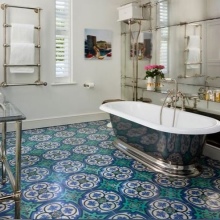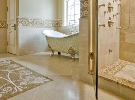 Se le piastrelle vengono scelte per il bagno, è meglio scegliere piastrelle con una superficie scanalata e ruvida. Questo eviterà la possibilità di lesioni dovute allo scivolamento su un pavimento bagnato.