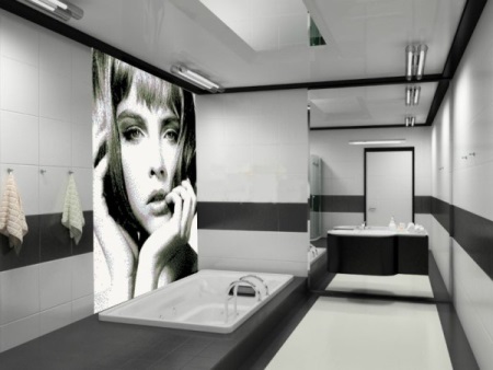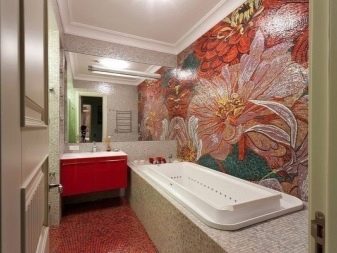 Le piastrelle a mosaico sono un ottimo modo per aggiungere un look insolito, elegante e moderno a un interno. Ci sono molte opzioni per il design delle pareti o del pavimento con le tessere di mosaico. Per esempio, un murale che adorna una delle pareti del bagno. Più comunemente, i paesaggi marini o altri motivi sullo stesso tema sono utilizzati per questo scopo.