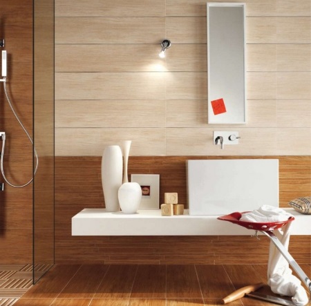 Le imitazioni di materiali naturali sono sempre state particolarmente popolari. Non è sempre possibile utilizzare il vero legno in un interno. La soluzione a questa situazione sono le piastrelle di imitazione del legno. Sono perfetti per pareti e pavimenti. Diversi tipi di legno sembrano molto armoniosi in diversi stili interni.