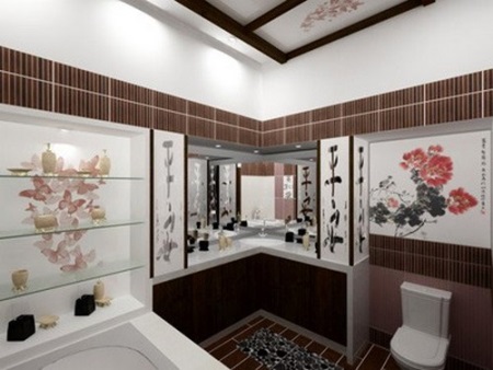 Stile orientale: Piastrelle decorative in varie stampe mettono in risalto accenti luminosi in un interno realizzato nei toni del bianco e del marrone.