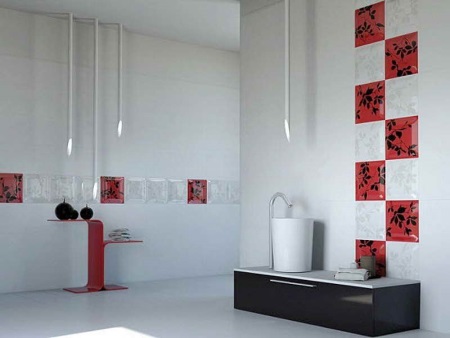 Se l'interno è di un design insolito e all'avanguardia, si possono usare i contrasti. La combinazione di piastrelle bianche e nere, nere e rosse e altri colori fortemente contrastanti sembra molto efficace.