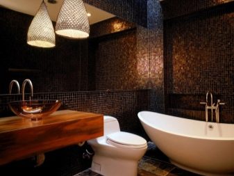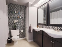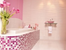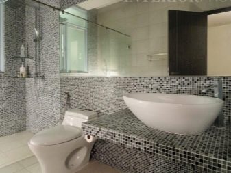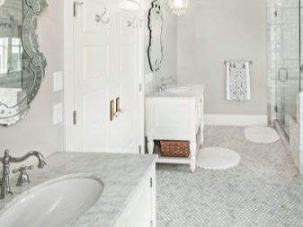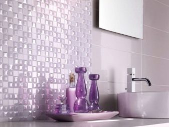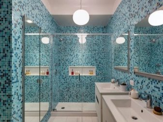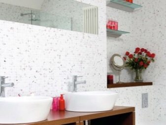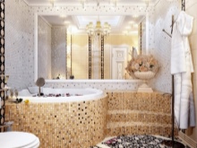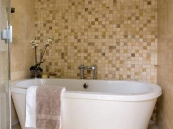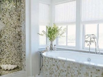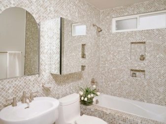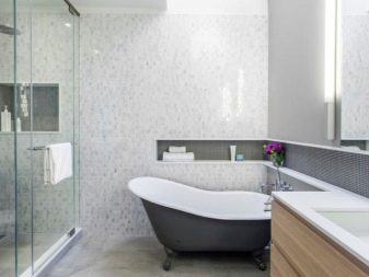 Una grande soluzione per migliorare visivamente lo spazio è quella di utilizzare il mosaico di marmo. Può essere una combinazione con un mosaico di ceramica chiara o una superficie di marmo monolitica.