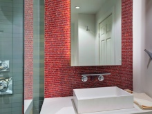 Colori stravaganti e vibranti e combinazioni di colori originali possono essere usati per creare interni insoliti e vivaci. Il rosso, per esempio, si armonizza bene con il bianco o il nero. Un tale bagno sembra molto moderno ed elegante.