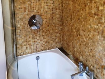 Ogni materiale, oltre agli ovvi vantaggi, ha degli svantaggi. Agli svantaggi delle piastrelle sotto il mosaico può essere attribuito solo un costo relativamente alto del materiale e della sua installazione in confronto alle controparti. Ma questo è solo a prima vista. Se consideriamo quanti anni questo rivestimento può durare senza riparazioni e sostituzioni, il beneficio diventa ovvio.
