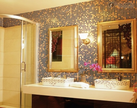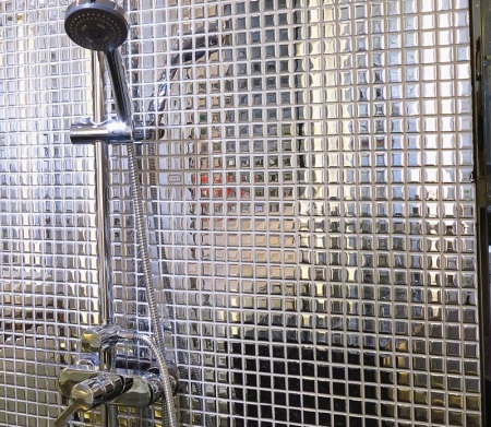 Il rivestimento delle pareti e del pavimento può essere fatto di mosaico dello stesso colore o in contrasto. Il mosaico non può coprire l'intera superficie, ma può essere usato in combinazione con altri materiali. Per esempio piastrelle di ceramica di grandi dimensioni o pannelli da parete.