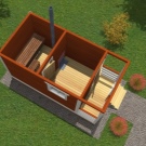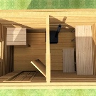 - 3x6mの木造のサウナ。最後の機能的な部屋は、サウナとして使える部屋にアレンジすることができます。最後のファンクションルームは、エントランスに作ることができます。残りのスペースは2つに分かれており、片方には洗浄室、もう片方にはスチームルームが備えられています。これにより、実用的で快適、かつ整頓しやすい小構造を実現しています。
