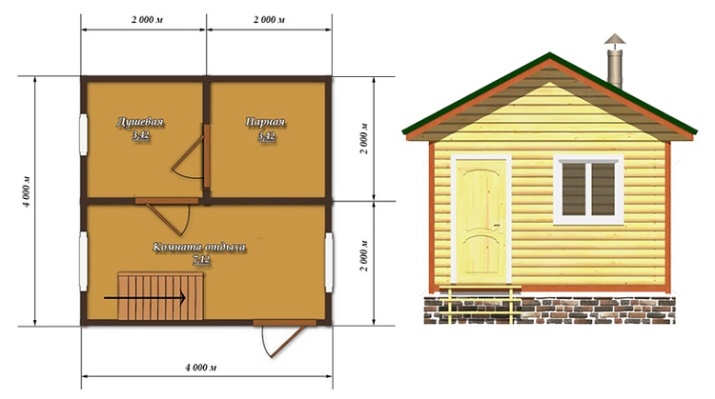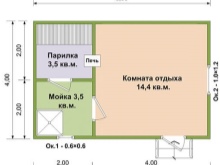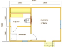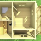 - 最もポピュラーなのは6×4mの建物です。 最も広い部屋は12.12平方メートルの広さがあり、快適な休憩室として利用することができます。残りの4.04平方メートルのコーナースペースには、小さなシャワールームとスチームルームのスペースが用意されています。