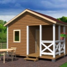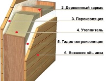 - 外から見ると、壁の下地はブロックハウスなどの人気素材で覆われています。また、バッテンやサイディングも適しています。これらの部品は、構造の剛性を高めるために使用されます。クラッドの下には、防水と断熱の層を設ける必要がある。