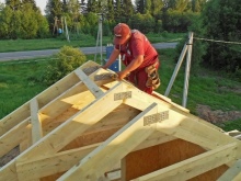 ラフターシステムのパーツは、地上で組み立ててから、次々と持ち上げていくのが望ましい。サウナ建築のサイズが小さい場合は、柔らかい屋根瓦(例えばオンドリン)を好適に使用することができる。