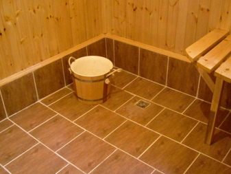 サウナの床材には、滑り止めのコーティングが施されていることがほとんどです。 セラミックスは耐湿性に優れているが、この特性は微細な孔を持つモデルにのみ適用される。 また、セラミック基板は表面を少し粗くしておくと、濡れた床で人の足が最大限のトラクションを確保できます。