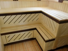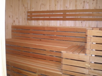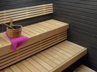 棚の良し悪しは、使用する素材によって全く異なることを忘れてはならない。木が丈夫であること。各スラットの表面はきれいに研磨され、小さな欠陥の兆候もないことが必要です。湿気や高温の蒸気にさらされても大丈夫な木材を選ぶことが非常に重要です。棚板の素材は、来場者が火傷や不快感を感じないよう、熱伝導率が低いものが望ましい。