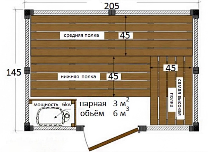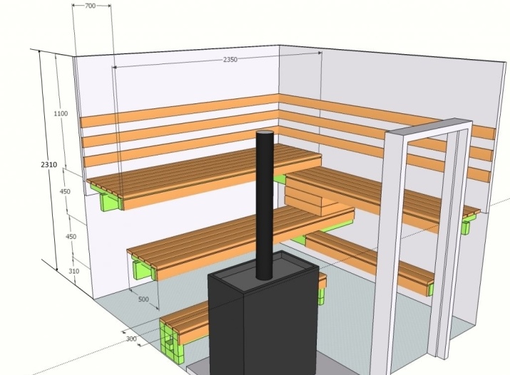 しかし、この件での計算は複雑ではないでしょう。サウナヒーターの高さに10cm追加してください。その結果、下段ベンチの最適な高さを実現しました。